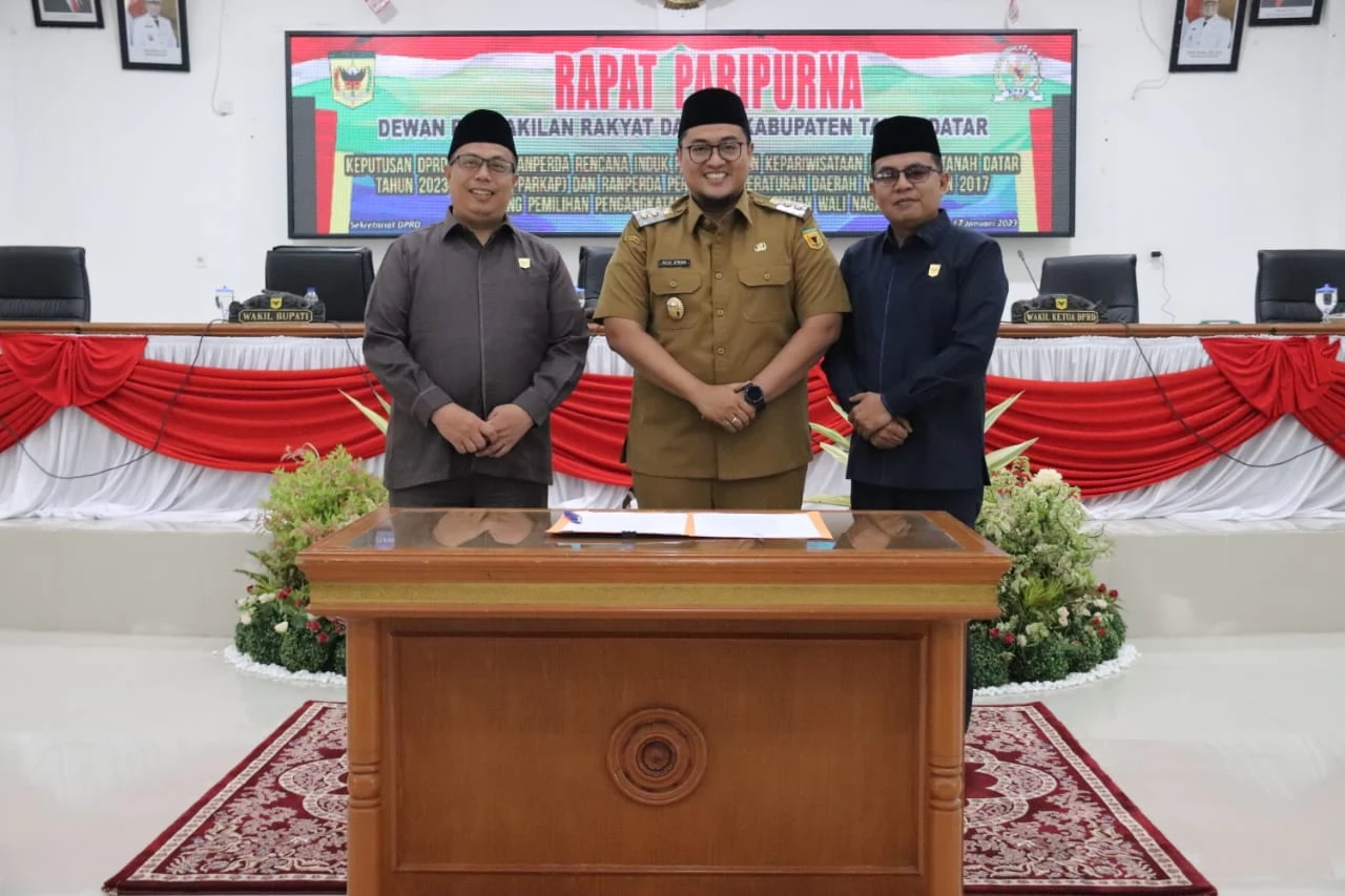 Rancangan Rencana Induk Pembagunan Pariwisata 2023 - 2025 Dan Rancangan Peraturan Daerah Tentang Perubahan Peraturan Daerah Nomor 1 Tahun 2017, Pemilihan, Pengangkatan dan Pemberhentian Wali Nagari. Digelar Dalam Acara Rapat Paripurna DPRD Kabupaten Tanah Datar Selasa 17 Januari 2023.