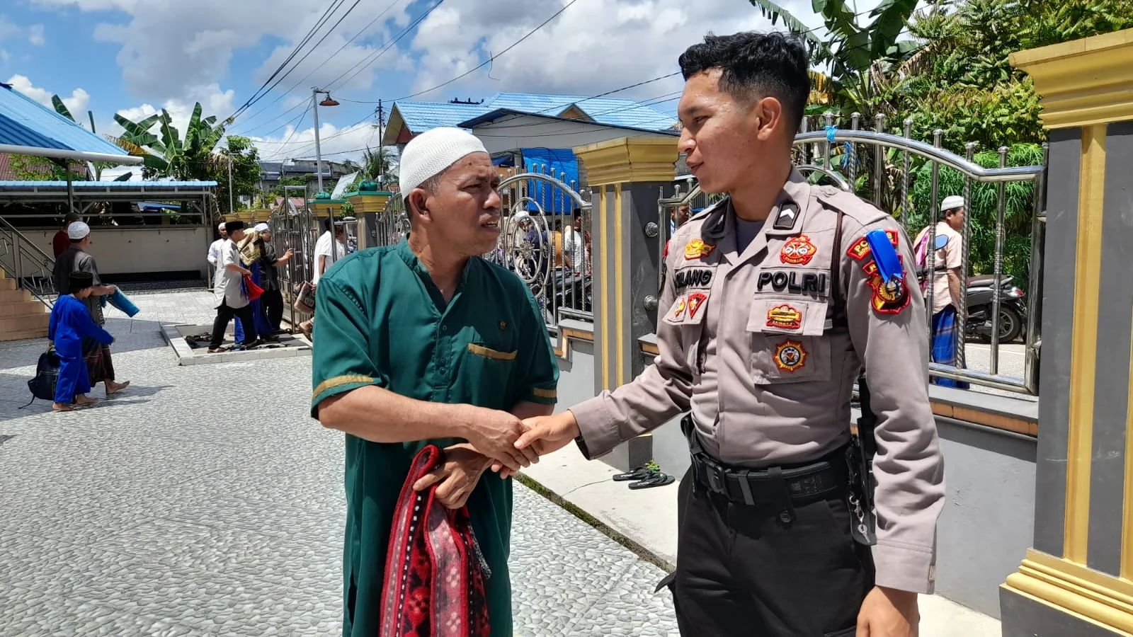 Inhil, Lintasliputan. com-Personil Samapta Polres Inhil, Polda Riau kembali melaksanakan rutinitas agenda sholat Jum’at keliling di Mesjid Nurul Wathan Jalan Perintis Tembilahan, Jum’at (10/2/2023).