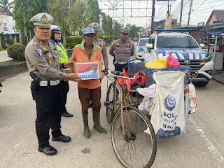 Tembilahan,-Polres Inhil Polda Riau melaksanakan Program Jumat berkah pemberian bantuan sembako untuk petugas kebersihan dan tukang becak di sekitar Tembilahan Kota, Jum'at (3/3).