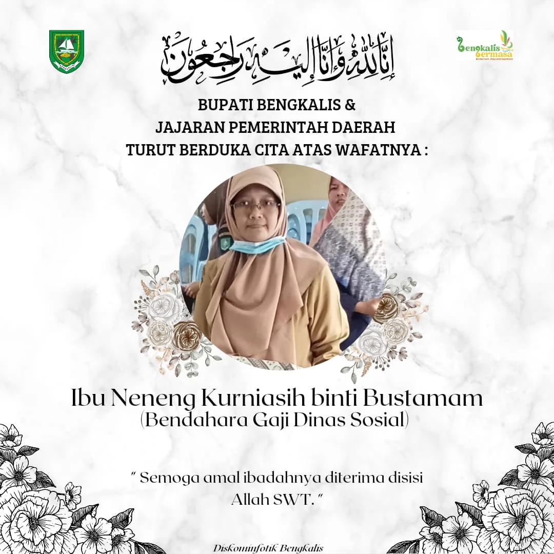 BENGKALIS - Lintas Liutan.com. Innalillahi wa Innailaihi Raji'un, telah berpulang kerahmatullah Neneng Kurniasih binti Bustamam (Bendahara Gaji Dinas Sosial), sekitar pukul 19.56 WIB, Sabtu malam, 11 Maret 2023, di RSUD Bengkalis.
