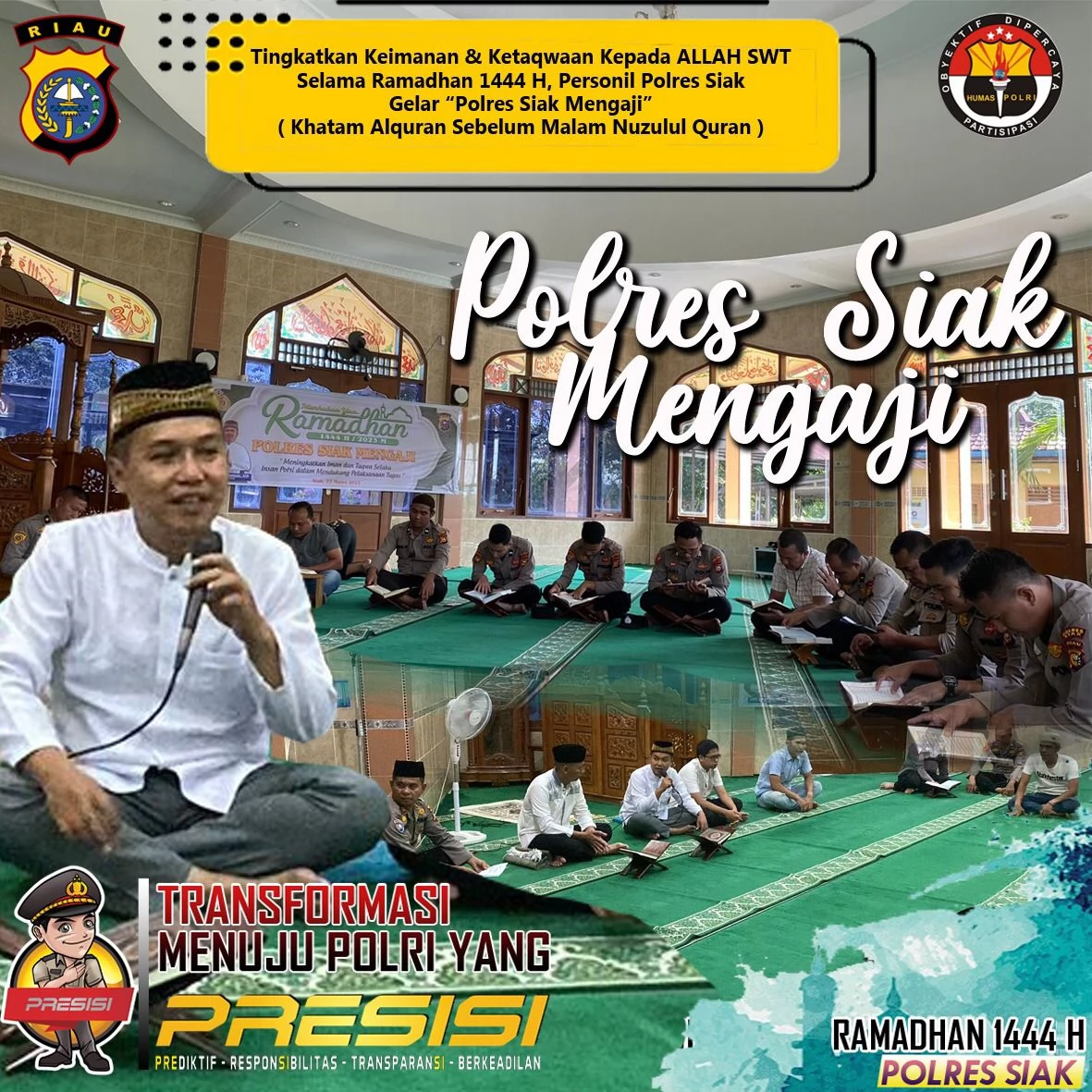 Di bulan suci Ramadhan 1444 H / 2023 M Polres Siak menggelar kegiatan dengan tajuk “Polres Siak Mengaji”.