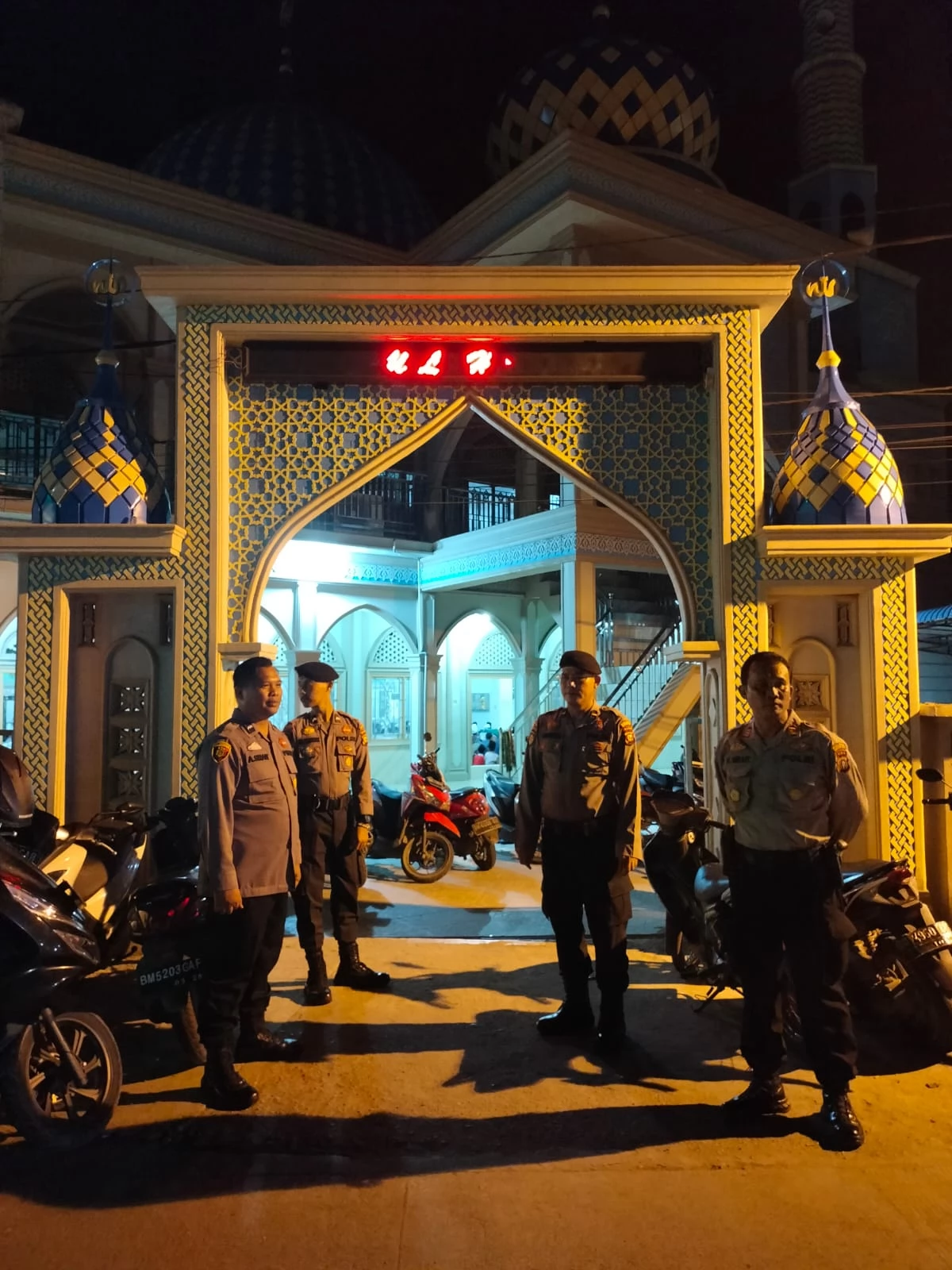 INDRAGIRI HILIR, Lintasliputan. com- Kasat Samapta, AKP. Kornel Sirait, S.H bersama personil Kepolisian Resor (Polres) Indragiri Hilir (Inhil) menjaga keamanan jalannya shalat Isya dan tarawih yang digelar di lokasi-lokasi Masjid di Kota Tembilahan, Rabu (29/3/2023).