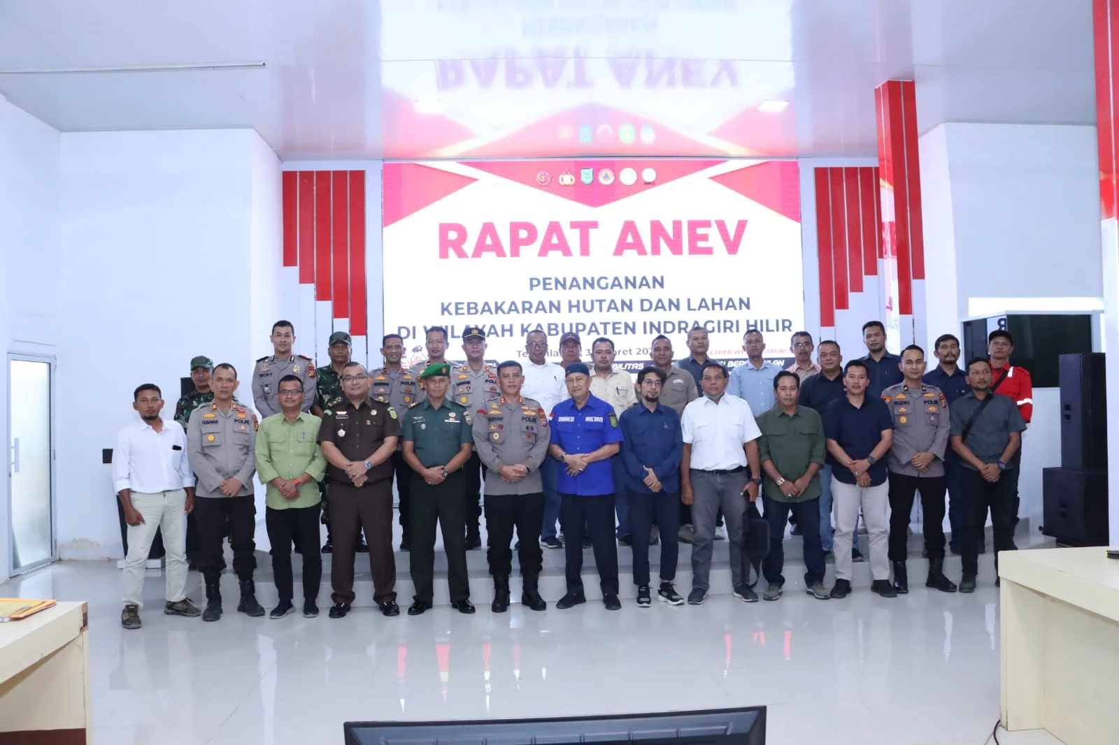 Kegiatan Rapat Anev tersebut dihadiri Wakil Bupati Inhil H. Syamsuddin Uti, Pasi Ops Kodim/0314 Kapten Arh Agus Purwanto, KasiPidum Kejari Inhil M. Ihsan, Kepala BPBD Inhil R Arliansyah, para pimpinan PT Se Kabupaten Inhil dan para Kapolsek Jajaran Polres Inhil.