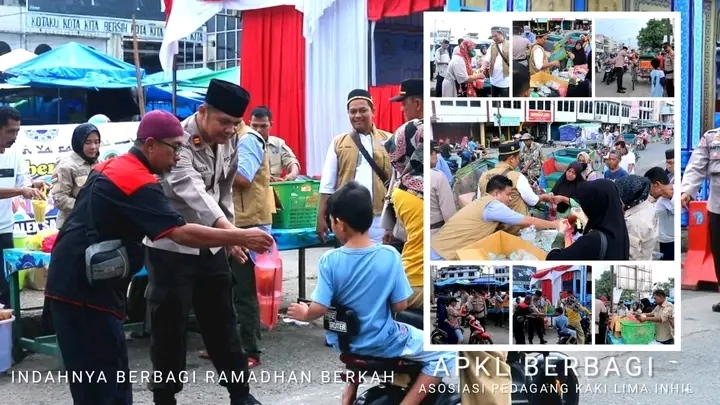 Tembilahan, Lintasliputan. com - Asosiasi Pedagang Kaki Lima (APKL) Inhil Bersama Anggota Polres Inhil ,yang dihadiri Polsek KSKP Tembilahan , Kasat Bimas Polres Inhil bagikan takjil untuk berbuka puasa kepada para pengguna jalan yang melintas di Jalan Sudirman Tembilahan Jum'at (31/03/2023) sore.