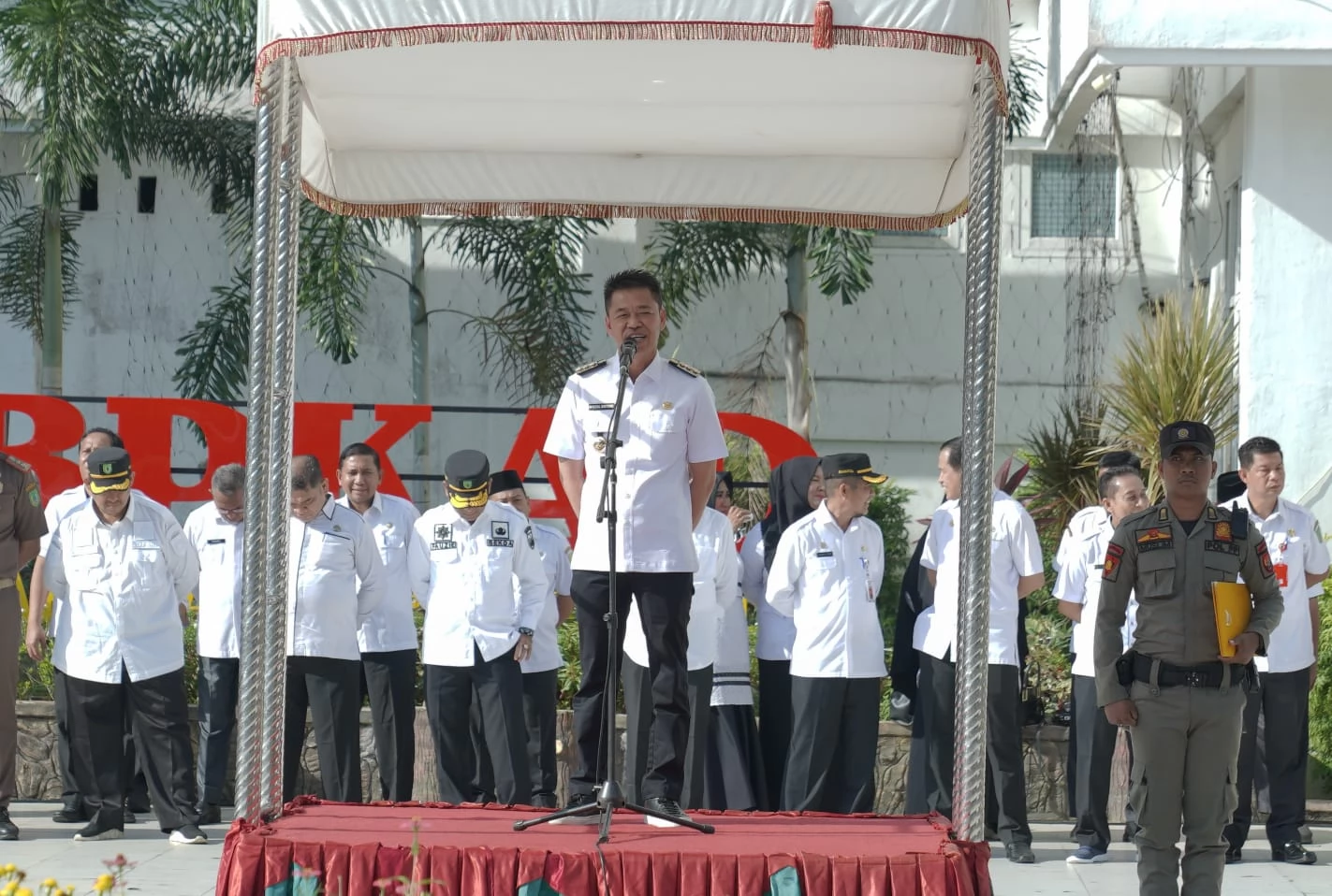 Dalam upacara bersama tersebut, Bupati Rohil Afrizal Sintong SIP secara langsung bertindak sebagai Pembina upacara dan dihadiri Wabup Rohil H Sulaiman SS MH, Sekda Rohil H Fauzi Efrizal, para Asisten, Kepala OPD dan ASN dilingkungan Pemkab Rohil.