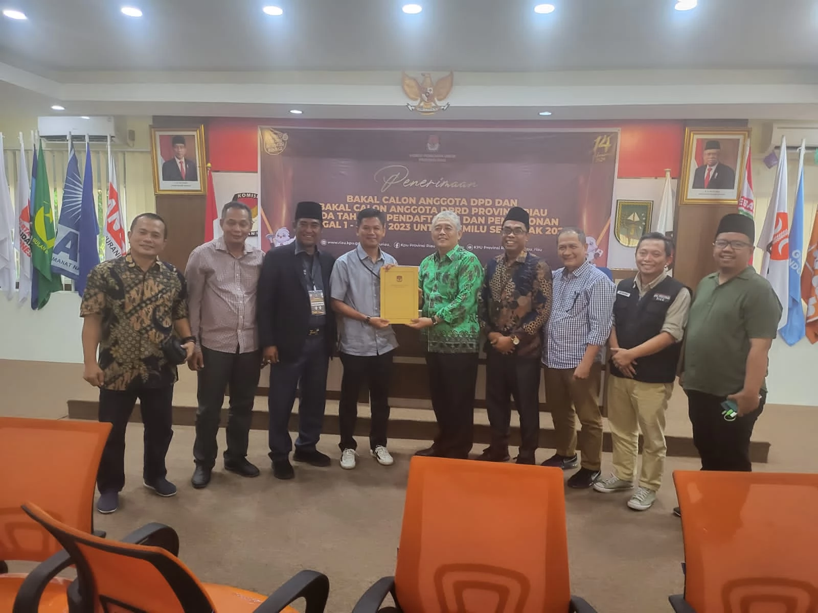 H.T.Rusli Ahmad,SE,MM kepada awak media menyampaikan bahwasanya pada hari ini, Sabtu tanggal 13 Mei 2023, berkas pencalonan saya sebagai calon DPD RI telah diterima oleh KPU Riau. Dan saya menyampaikan terima kasih kepada KPU Riau atas kinerja profesional yang telah dilakukan dimana saya melihat begitu banyak partai yang mendaftarkan caleg partai dapat dilayani dengan baik dan ramah.