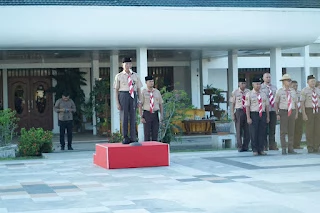 Dalam kesempatan ini juga Bupati mengintruksikan kepada semua pejabat agar di setiap tanggal 14 kembali memakai pakaian pramuka.