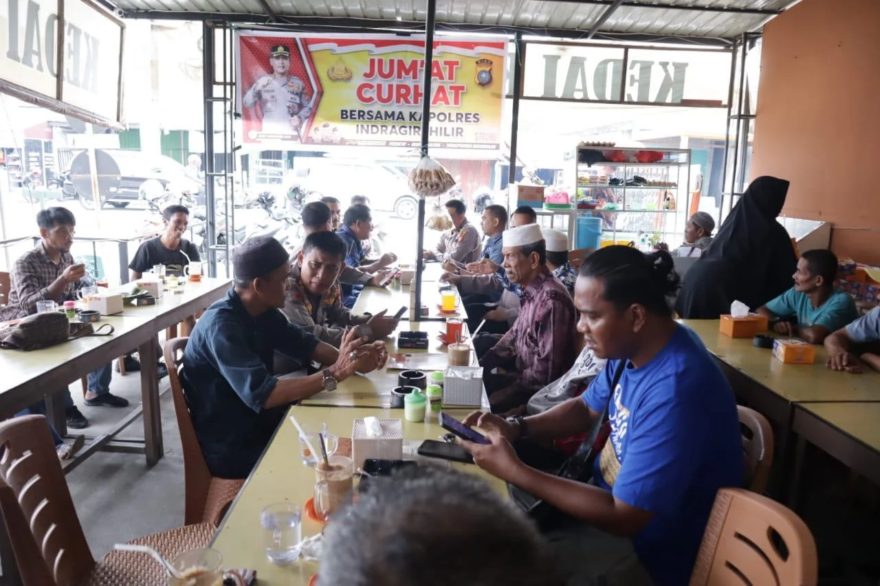 INHIL, Lintasliputan. com- Melalui program Jumat Curhat yang digagas oleh Polri, masyarakat menyampaikan keluhan secara langsung kepada pihak kepolisian. Seperti halnya dalam acara Jumat curhat yang dilaksanakan oleh Polres Inhil, Jumat (19/5), di salah satu kedai Jalan Sederhana Tembilahan Hulu.