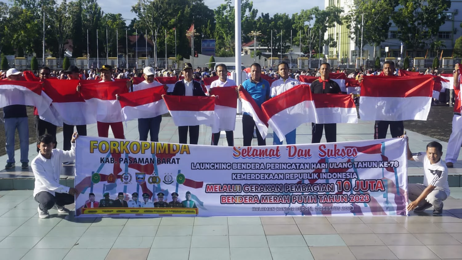 Lintasliputan.com | Pasaman Barat - Pemerintah Kabupaten Pasaman Barat (Pasbar) Launching Bendera Peringatan Hari Ulang Tahun (HUT) Ke-78 Kemerdekaan Republik Indonesia (RI) melalui Gerakan Pembagian 10 Juta Bendera Merah Putih Tahun 2023.