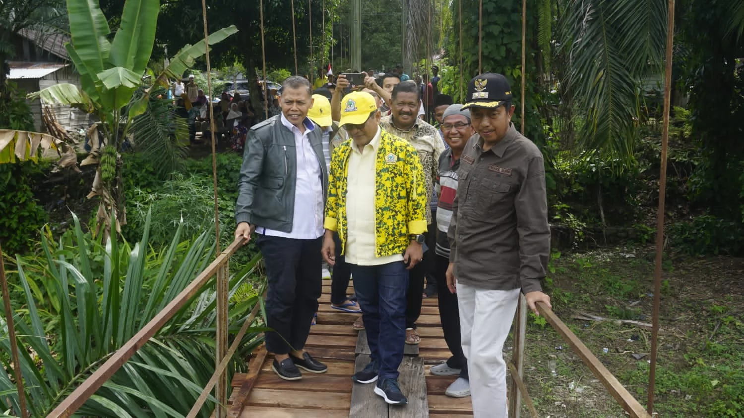 Lintasliputan.com,.Pasbar | Setelah memperoleh laporan dan pengaduan dari masyarakat Bancah Pabik Sungai Paku, Nagari Ampek Koto Kecamatan Kinali, Kabupaten Pasaman Barat (Pasbar) tentang kondisi jembatan gantung di daerah itu, Anggota DPR RI John Kenedy Aziz didampingi Wakil Bupati Pasbar Risnawanto dan Wakil Ketua DPRD Daliyus K, langsung melakukan peninjauan ke lokasi dan melihat kondisi jembatan tersebut, pada Jumat (18/8). Juga hadir dalam peninjauan, tim dari BNPB, Kepala BPBD Pasbar, wali nagari, dan stakeholder terkait lainnya.