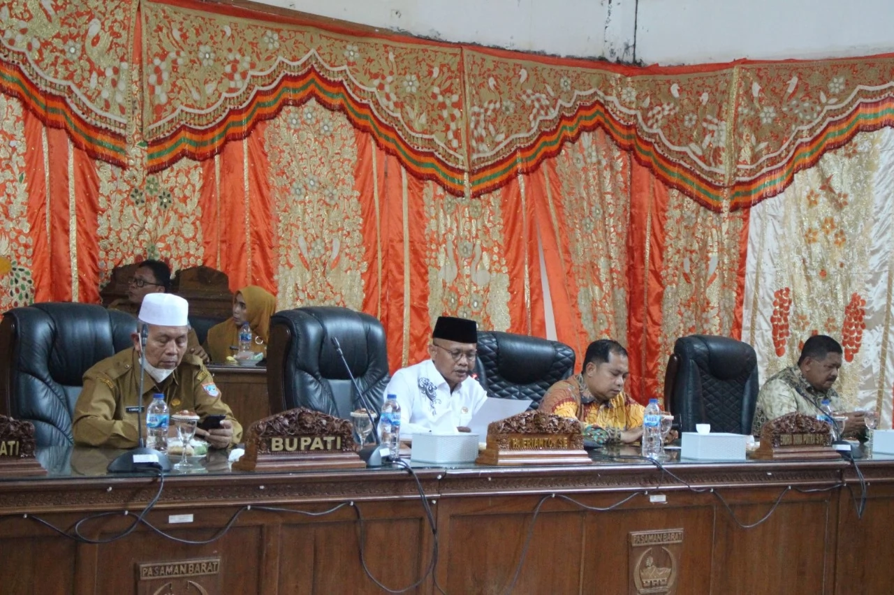 Pasbar Lintas liputan.com _ Bupati Pasaman Barat (Pasbar) Hamsuardi didampingi stakeholder terkait, Senin (18/9) menyampaikan Jawaban Atas Laporan Badan Anggaran (Banggar) Terhadap Rancangan Kebijakan Umum Perubahan APBD (KUPA) dan Prioritas Plafon Anggaran Sementara (PPAS) Perubahan Tahun Anggaran 2023, pada Sidang Paripurna Ketiga Masa Sidang Kesatu, di Ruang Rapat DPRD Pasbar setempat.