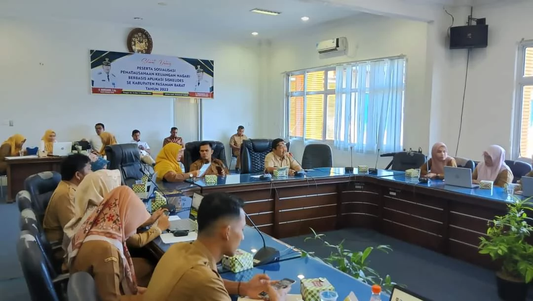 Pasbar,(Lintasliputan.com) - Pemerintah Daerah Kabupaten Pasaman Barat (Pasbar) melalui Dinas Pemberdayaan Masyarakat dan Nagari (DPMN) melaksanakan Sosialisasi Penatausahaan Keuangan Nagari Berbasis Aplikasi Siskeudes se-Kabupaten Pasaman Barat yang dimulai dari tanggal 10 Oktober sampai dengan 13 Oktober 2023 dan diikuti oleh 90 nagari yang ada di Pasbar.