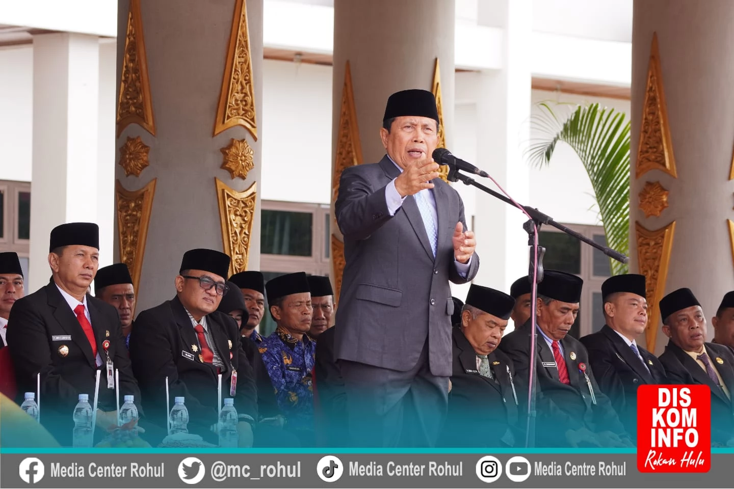 Upacara Dihadiri oleh Wakil Bupati Rokan Hulu H. Indra Gunawan, Forkopimda, Sekda Rohul Muhammad Zaki SSTP, M.Si, para Asisten dan staf Ahli Bupati, Kepala dinas Komunikasi dan Informatika, H.Syofwan S.Sos, beserta Kepala OPD lainnya dan LAMR Rohul.