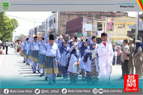 Dalam pelaksanaan Pawai rombongan dari Kabupaten Rokan Hulu telah menampilkan beragam Penampilan baik dari pencak silat, penampilan lukah gilo oleh suku asli Bonai, dan diramaikan oleh para guru-guru dan para kades se kabupaten Rokan hulu.
