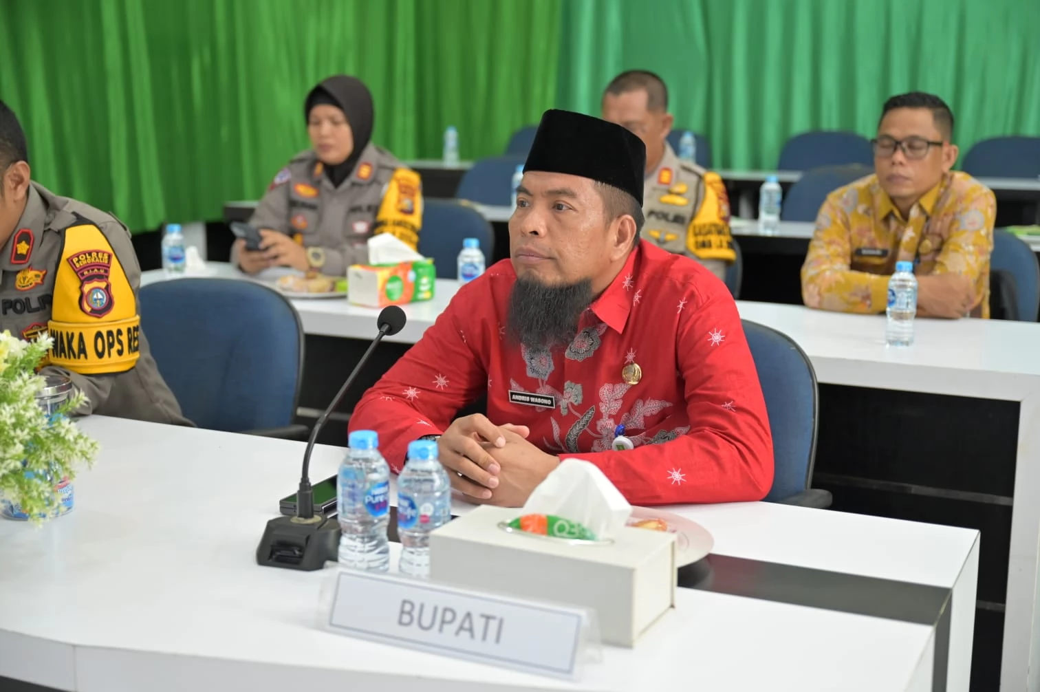 Terlihat hadir mengikuti virtual tersebut Jajaran Polres Bengkalis, Kepala Bidang Peternakan dan Kesehatan Hewan Dinas Tanaman Pangan Hortikultura dan Peternakan Kabupaten Bengkalis Suhairi.(Inf/Deskominfotik)