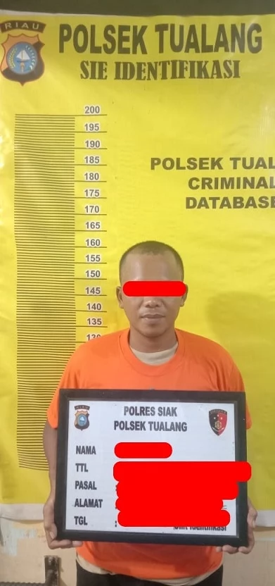 Kapolsek Tualang Kompol Hendrix,S.H,M.H, memerintahkan Panit Reskrim Ipda Samos Joni Nainggolan bersama tim Opsnal untuk melakukan Penangkapan terhadap Pelaku yang sudah di ketahui keberadaannya. Pelaku ditangkap di. Jl. Alamsyah Gg. Ujung Batu Rokan RT 012 RW 002 Kampung Meredan Barat Kec. Tualang Kab. Siak.