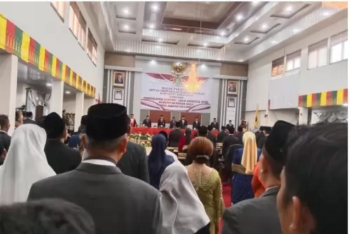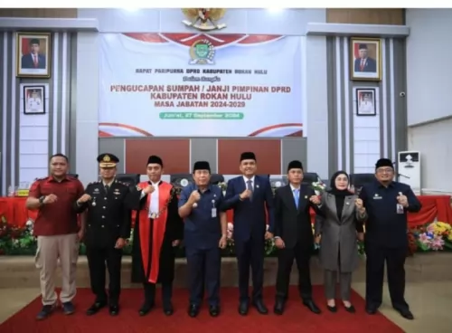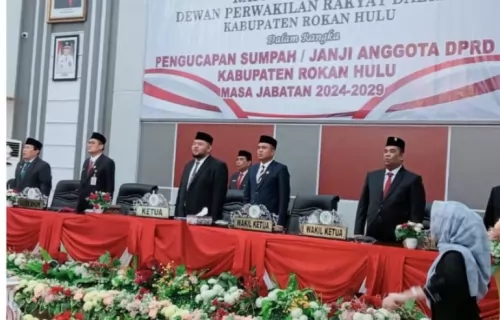 Rokan Hulu—Bupati Kabupaten Rokan Hulu (Rohul) H Sukiman dan Wakil Bupati H Indra Gunawan hadiri pelantikan 45 Anggota Dewan Perwakilan Rakyat Daerah (DPRD) Rohul Periode 2024-2029.