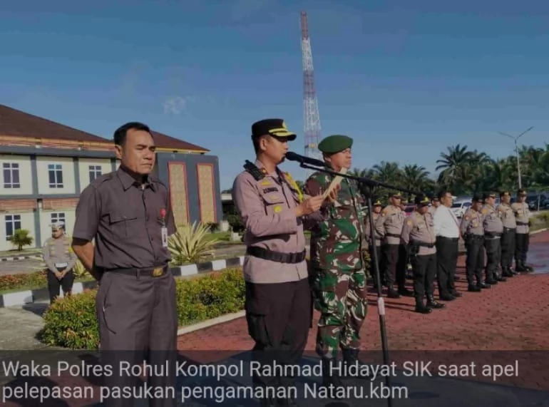 Pada apel gelar pasukan pengamanan Nataru yang dihadiri oleh pasukan TNI, Polri, Satpol PP, Damkar dan Perhubungan serta Pramuka, Waka Polres Rohul Kompol Rahmad Hidayat juga membacakan sambutan Kapolri Jendral Pol Sigit Prabowo SIK. Apel yang selesai menjelang pukul 09:00 WIB tersebut diakhiri dengan sesi foto bersama