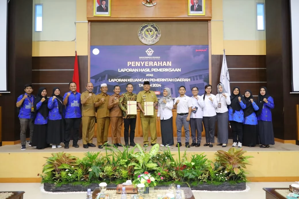 Penghargaan tersebut, diserahkan langsung Kepala Perwakilan BPK RI Perwakilan Provinsi Riau Binsar Karyanto kepada Bupati Siak Alfedri, di acara penyerahan Laporan Hasil Pemeriksaan (LHP) Laporan Keuangan Pemerintah Daerah (LKPD) tahun 2024.