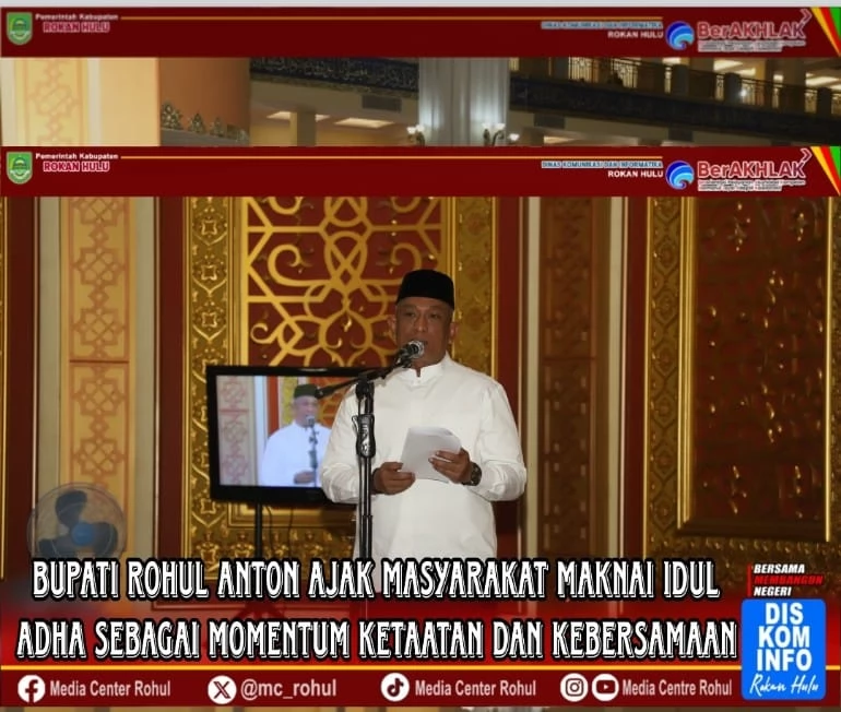 Dalam sambutannya Bupati Rohul Anton menyampaikan I’dul Adha merupakan salah satu hari raya besar bagi umat islam, dan memiliki makna mendalam tentang pengorbanan, ketaatan, dan keikhlasan.