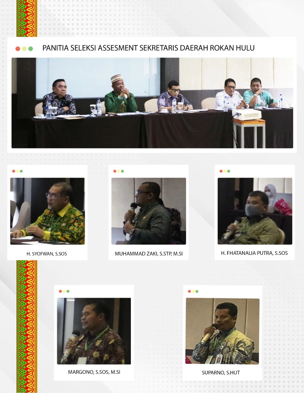 Rohul - Kabupaten Rokan Hulu sudah akan memiliki Sekretaris Daerah (Sekda) Depenitif yang baru, hal ini ditandai dengan telah dilakukannya seleksi assessment calon sekda Rokan Hulu yang awalnya di ikuti oleh 8 peserta namun hanya 6 peserta yang lolos dalam seleksi administrasi.