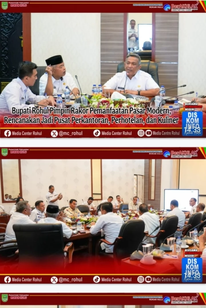 Rokan Hulu – Bupati Rokan Hulu (Rohul) Anton, ST, MM memimpin langsung Rapat Koordinasi (Rakor) terkait pemanfaatan Pasar Modern yang akan dikembangkan sesuai dengan kategorinya, Rabu (20/8/2025) di Ruang Rapat Rumah Dinas Bupati.