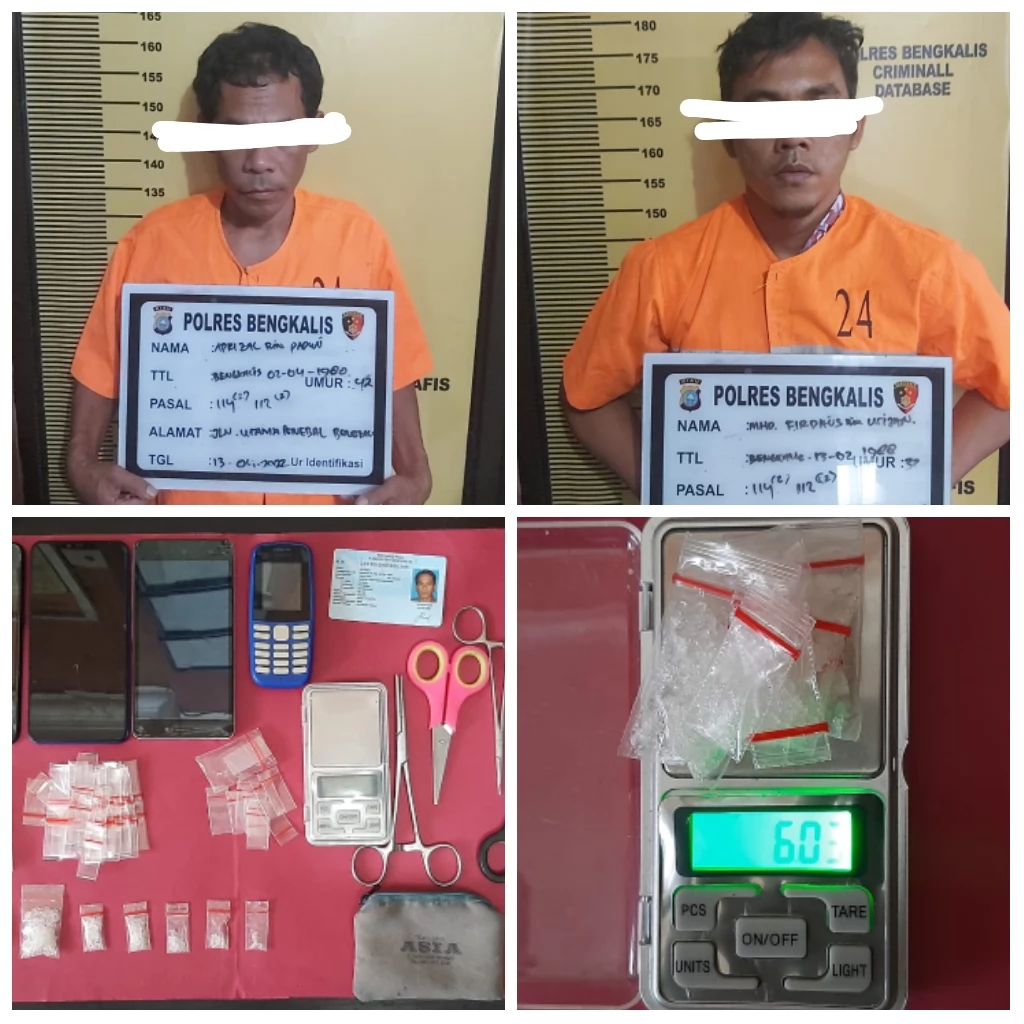 Selanjutnya tersangka dan barang bukti dibawa ke Mapolres Bengkalis guna dilakukan Penyidikan lebih lanjut. Dari hasil interogasi peran serta masing-masing 1. Peran TSK M.firdaus als usup dan Afrizal Als Kentang adalah sebagai pengedar atau bandar. Bahwa Tsk tersebut adalah M.firdaus Als usup dan Afrizal Als kentang Adalah Residivis.