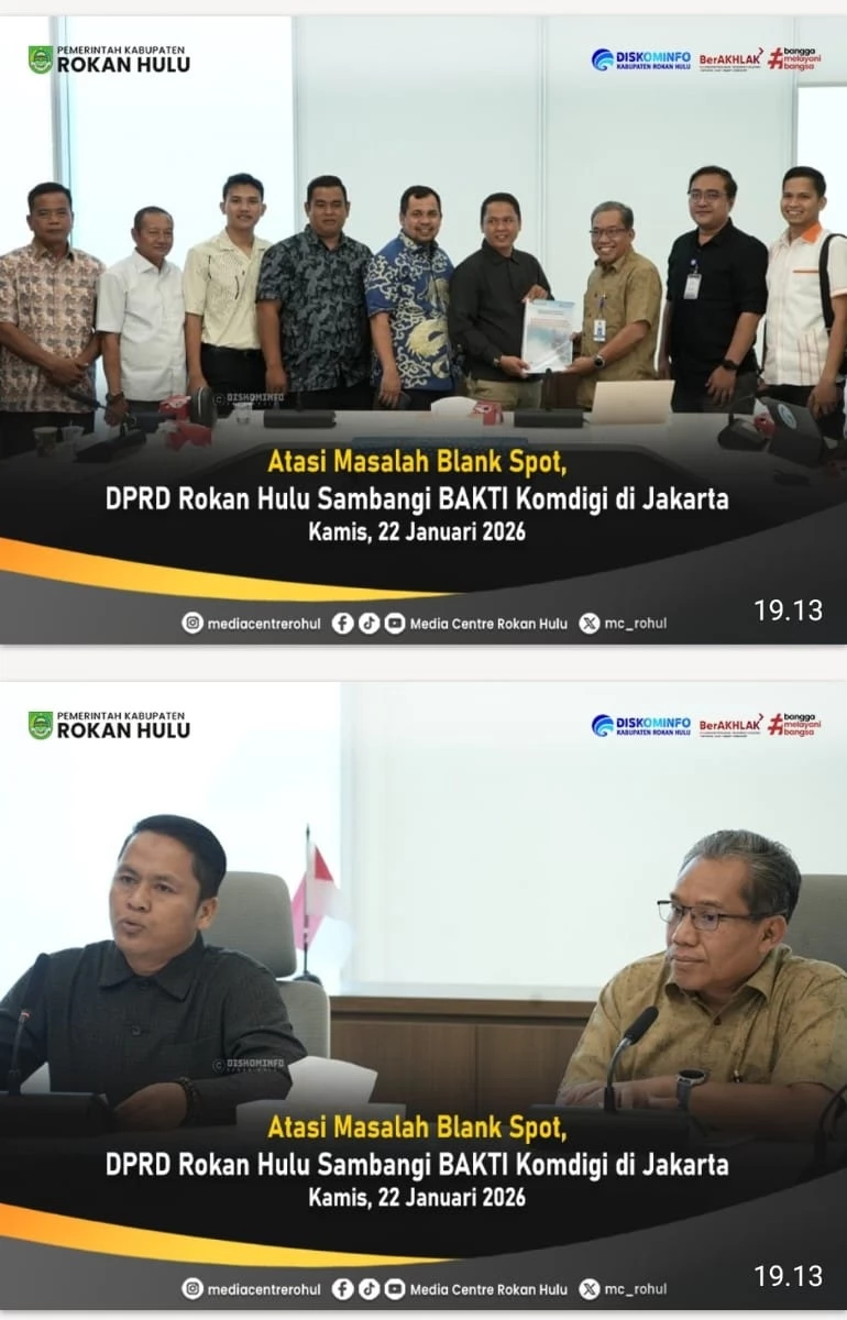 JAKARTA – Guna mempercepat pemerataan akses digital di Negeri Seribu Suluk, jajaran pimpinan dan Komisi IV DPRD Kabupaten Rokan Hulu (Rohul) melakukan kunjungan kerja strategis ke Kantor Badan Aksesibilitas Telekomunikasi dan Informasi (BAKTI) Komdigi di Gedung Centennial Tower, Jakarta, Kamis (22/1/2026).