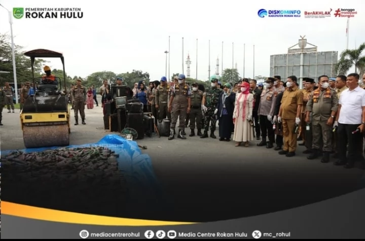 Rohul/Riau– Pemerintah Kabupaten Rokan Hulu (Rohul) menggelar kegiatan pemusnahan barang bukti temuan hasil giat penegakan Peraturan Daerah (Perda) tahun 2025. Acara yang berlangsung khidmat di halaman Kantor Bupati Rokan Hulu ini dipimpin langsung oleh Wakil Bupati Rokan Hulu, H. Syafarudin Poti, SH, MM, Selasa (24/02/2026)