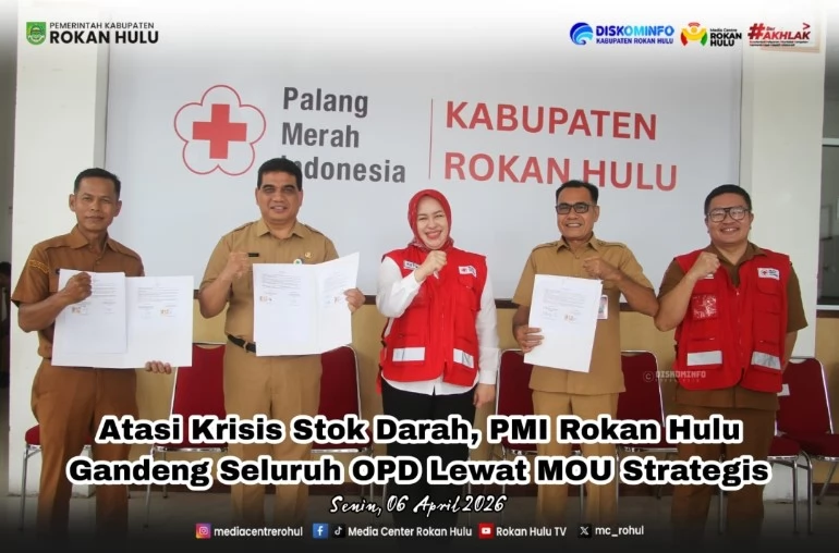 Rohul – Menanggapi kondisi stok darah yang kian menipis di Kabupaten Rokan Hulu (Rohul), Palang Merah Indonesia (PMI) Cabang Rokan Hulu mengambil langkah proaktif. Di bawah komando dr. Yeni Dwi Putri, PMI Rohul resmi menjalin kerja sama formal melalui penandatanganan Memorandum of Understanding (MOU) dengan Organisasi Perangkat Daerah (OPD) di lingkungan Pemerintah Kabupaten Rokan Hulu pada Senin (6/4/2026).