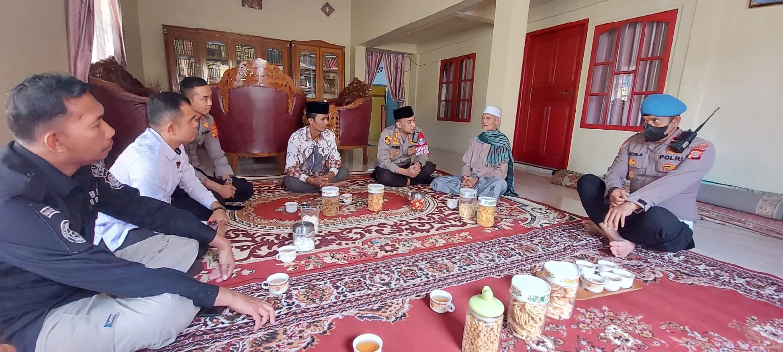 Saat berkunjung kekediaman Tgk . H. Mahmud Alimal ( Tgk. Raudhah, Kapolres Bener Meriah, didampingi oleh Kapolsek Wih Pesam, KBO Sat Intelkam, Kasi Propam dan Kasi Humas Polres Bener Meriah.