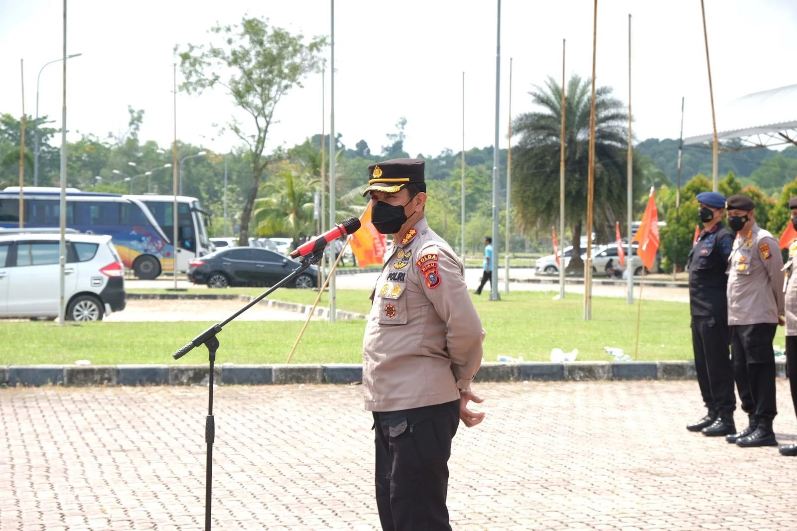 PEKANBARU, lintasliputan.com - Ratusan aparat kepolisian dikerahkan untuk melakukan pengamanan aksi buruh di Stadion Kaharuddin Nasution Pekanbaru, yang dilakukan secara serentak oleh buruh di seluruh Indonesia.