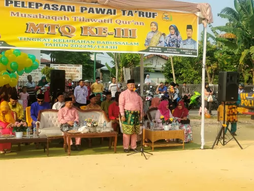 “Pada kesempatan pagi hari ini kita dapat berkumpul bersama-sama di lapangan kuning Nusantara satu,kelurahan Babussalam dalam rangka mengikuti Pelepasan Pawai MTQ Ke-III di jln Cendana RW 4 lapangan kuning Nusantara satu Lapangan Kuning Kelurahan Babussalam Kecamatan Mandau”, ujar Camat Mandau.