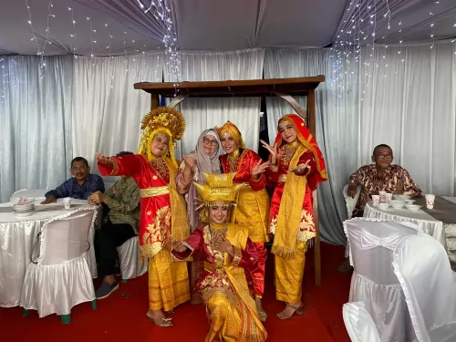Ibu Ningsih yang merantau di Amerika asal dari Pariaman Hadir di acara resepsi meminta berphoto bersama dengan sanggar tari Panglimo Campo menyampaikan photo kita nanti akan saya sebarkan dan perlihatkan kepada orang orang perantau Minangkabau di Amerika bahwa budaya Minangkabau