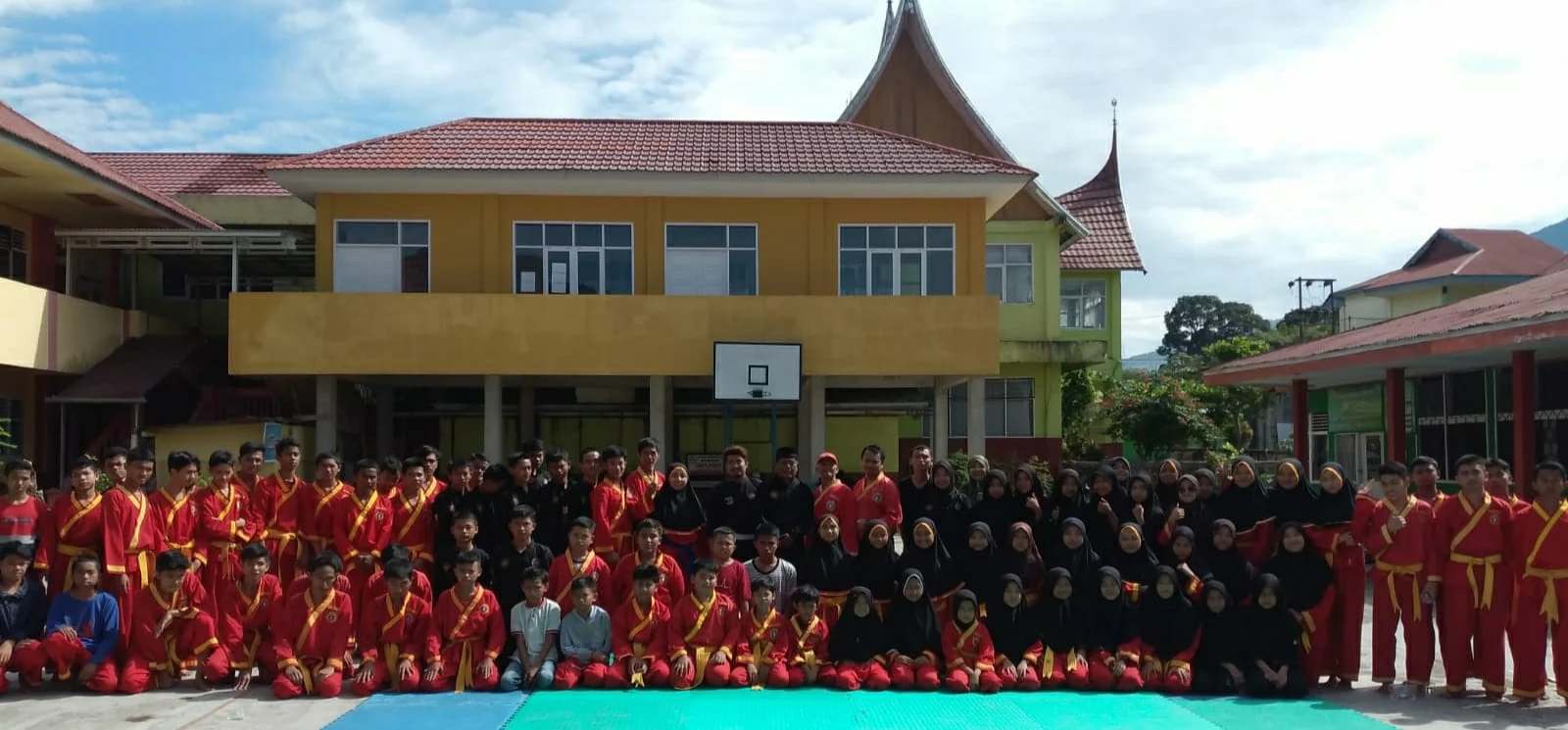 -Peguruan Silat Taduang Bangkeh Batipuh latihan bersama dengan Perguruan Silat Tapak Suci yang dipusatkan di halaman KMM (Kulliyatul Mubalghien) Muhammadiyah padang Panjang