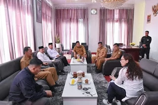 Redelong, Lintasliputan.com - Penjabat Bupati Bener Meriah Drs. Haili Yoga, M.Si yang didampingi oleh Plt. Sekda Armansyah, SE, M.Si dan Para Asisten menerima kunjungan Tim CRU DAS Peusangan diruang kerja bupati, Selasa , 9/8/2022.