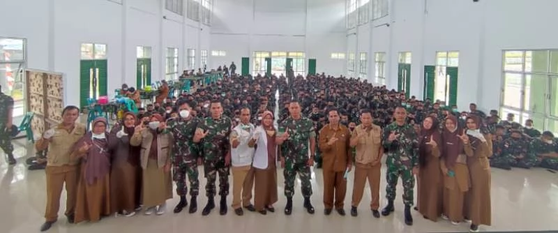 Bener Meriah – Sebanyak 450 personil Satuan Tugas Pengamanan Perbatasan (Satgas Pamtas) Penyangga dari Batalyon Infanteri Raider Khusus (Yonif RK) 114/SM yang baru pulang dari tanah Papua tanggal 19 Agustus yang lalu langsung mendapatkan Vaksinasi Booster Covid-19 dari pemerintah daerah melalui Dinas Kesehatan Kabupaten Bener Meriah yang dilaksanakan di aula Aman Dimot Komplek Markas Yonif RK 114/SM, Senin, 22/8/2022.