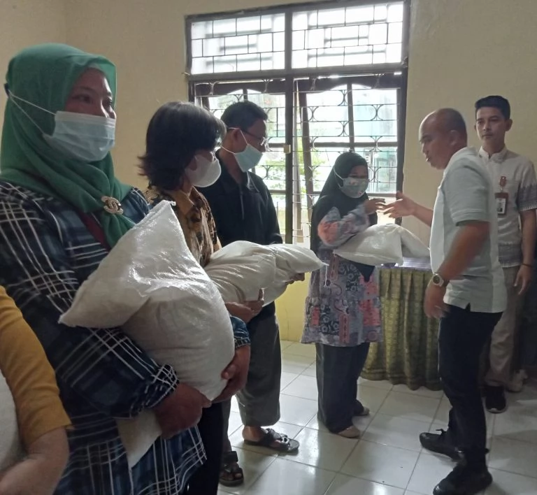 Pangkalpinang,Lintasliputan-Walikota Pangkalpinang, Maulan Aklil (Molen) bagikan 106 paket cadangan beras pangan Kota Pangkalpinang, di Kantor Kecamatan Taman Sari, Kamis, (8/9/2022).