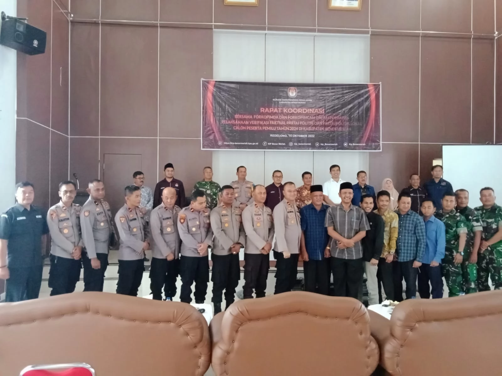 Redelong - Komisi Independen Pemilihan Kabupaten Bener Meriah gelar Rapat Koordinasi Bersama Forkopimda dan Forkopimcam Dalam Persiapan Pelaksanaan Verifikasi Faktual Partai Politik dan Partai Politik Lokal Calon Peserta Pemilu Tahun 2024 di Kabupaten Bener Meriah. Sabtu, 15/10/2022.