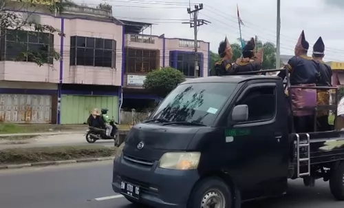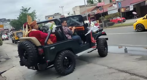 Diawali dengan konvoi Komunitas Mobil Hard Top Di depan Hotel Granzuri jalan Hangtuah yang mana pengantin pria dan wanita di arak dengan beberapa mobil Hard Top. konvoi mengiringi pengantin pria dan wanita juga masuk barisan mobil pickup yang di atasnya ada pemain Tambua dari group Panglimo Campo menggebuk Tambua mengikuti arak arakan mobil tepat di belakang mobil pengantin. Arak - arakan ini menyusuri jalan Hangtuah, sesampainya di depan moya futsal, Rombongan kembali ke depan hotel grand Zuri menuju lokasi pesta.