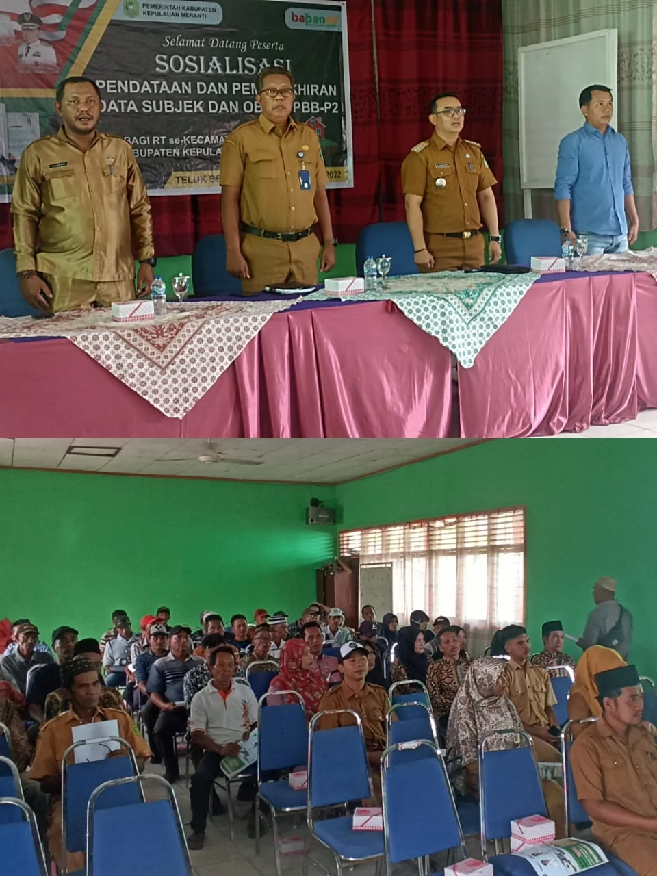 Badan Pendapatan Daerah (Bapenda) Kabupaten Kepulauan Meranti gelar sosialisasi pendapatan dan pemutakhiran data subjek dan objek dan PBB- P2, bagi seluruh RT Se Kecamatan Merbau pada Selasa (15/11/2022).