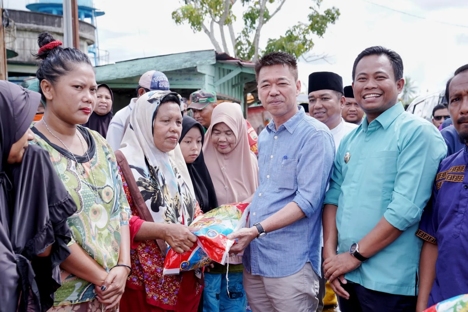 Tampak satu buah truk coltdiesel yang bermuatan sembako berupa beras, telur dan mie instan itu dibagikan langsung oleh Bupati dan wakil bupati di beberapa titik kepada masyarakat di Jalan Bahagia, Jalan Siak dan Selamat Bagansiapiapi.