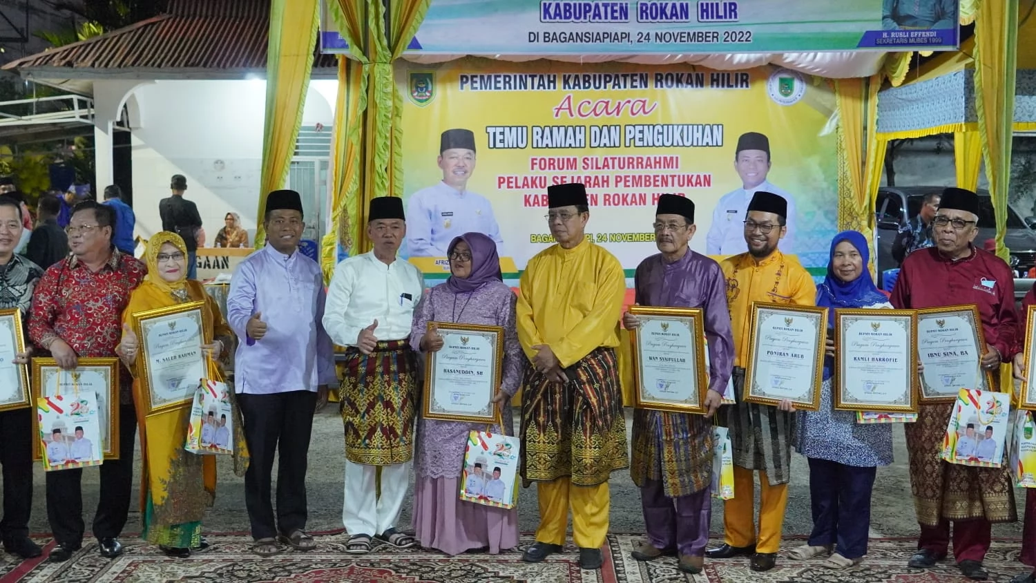 ROKAN HILIR, Lintasliputan.com - Bupati Rokan Hilir Afrizal sintong secara resmi mengukuhkan pengurus Forum Silaturahmi Pelaku Sejarah Pembentukan Kabupaten Rokan Hilir (FSPSPKR) masa bakti 2022-2027, Kamis (24/11/2022) malam pada acara temu ramah dengan pendiri Rohil yang digelar di halaman mess Pemda Bagansiapiapi.