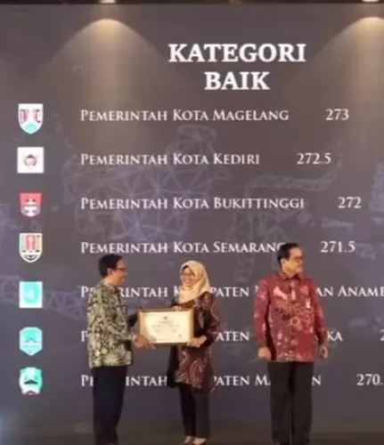 Untuk itu, Wako menyampaikan terima kasih kepada pimpinan SKPD yang sudah terlibat dalam proses sehingga masuk kategori daerah terbaik se-Indonesia," ungkap Sustinna, Kamis (08/12). Wali Kota Bukittinggi selaku pejabat pembina kepegawaian, kembali terima Anugerah Meritokrasi Tahun 2022 kategori Baik. Anugerah itu diterima Wali Kota yang diwakili oleh Kepala BKPSDM Bukittinggi dari Ketua KASN, di Hotel Grand Sahid Jaya, Jakarta, Kamis, (08/12).