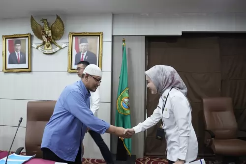 Rombongan Dari Padang Panjang di sambut Oleh Rika Efiyanti SE.MM Kepala Humas dan Protokoler Di Ruangan Rapat Kantor Gubernur.