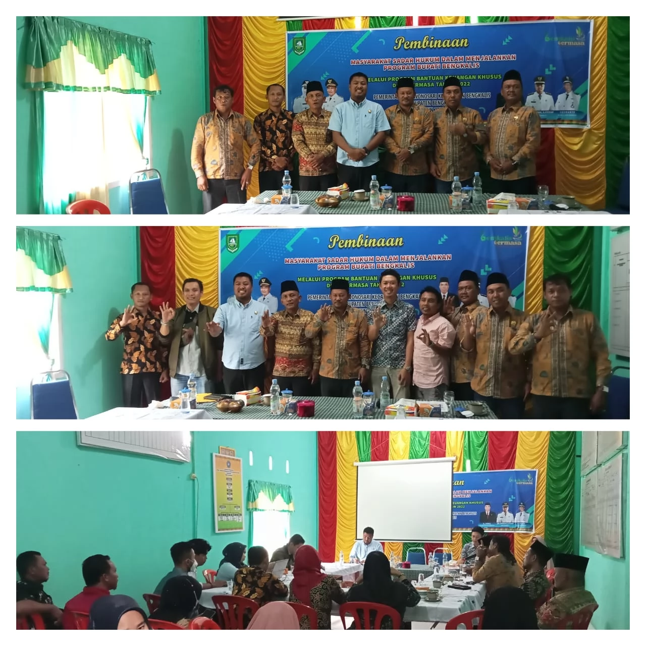 Pembinan masyarakat sadar Hukum dalam menjalan kan program Bupati Bengkalis, yaitu melalui bantuan keuangan khusus dana bermasa tahun 2022 ini. Yaitu di desa wonosari kecamatan Bengkalis kabupaten Bengkalis di Aula desa wonosari 15/12/2022.