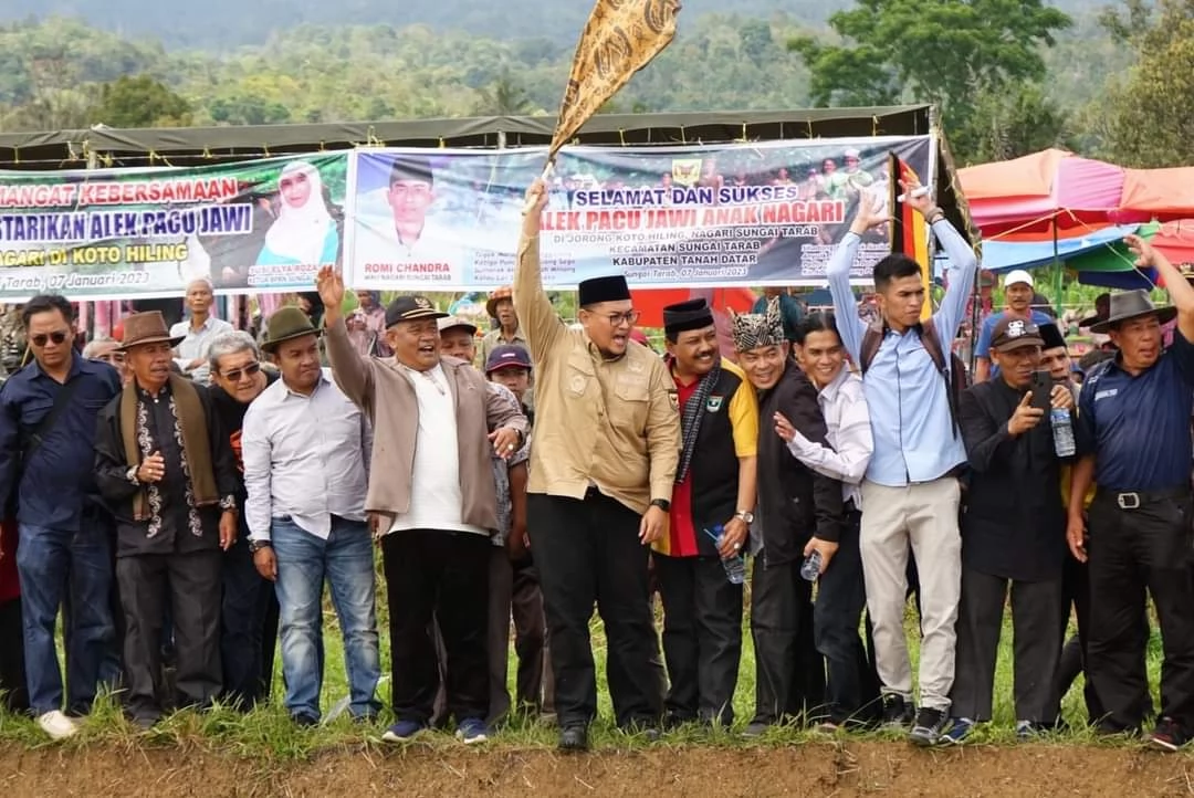 Richi Aprian juga ucapkan selamat datang kepada wisatawan domestik dan mancanegara melalui biro perjalanan yang telah mengagendakan untuk menyaksikan alek pacu jawi di kabupaten Tanah Datar. Sebelumnya, ketua Porwi Tanah Datar Dt. Indomo didampingi ketua pelaksana Afrizal menyampaikan alek Pacu Jawi di jorong Koto Hiling sudah 8 tahun tidak bisa dilaksanakan karena terkendala air dan akses jalan sedangkan arena ini merupakan arena yang terbaik dan memiliki nilai sejarah karena di tahun 1808 sudah di gelar pacu jawi disini yang diawali jawi Kalupak Balang Puntuang kepunyaan Marpatiah dari Pariangan Padang Panjang dan berkembang ke 3 kecamatan dengan tujuan mengikat tali persatuan. Sementara itu anggota DPRD Tanah Datar Benny Apero menyampaikan ucapan terima kasih kepada panitia dan masyarakat yang sudah menyukseskan kegiatan pacu jawi ini. Ia berharap kegiatan ini ke depan akan terus berlanjut sebagai tradisi yang telah turun temurun dari dulunya, untuk akses jalan dan irigasi akan dianggarkan bersama anggota DPRD Propinsi dan Pemkab Tanah Datar. Turut hadir pada acara tersebut anggota DPRD sumbar Arkadius Dt Intan Bano, angota DPRD Tanah Datar Beny Apero, Yalpima Jurin dan Nurhamdi Zahari, camat Sungai Tarab Arianto, forkopimca, Wali Nagari, tokoh masyarakat dan ribuan masyarakat.(lintas liputan/ Prokopim/h/a/montes)