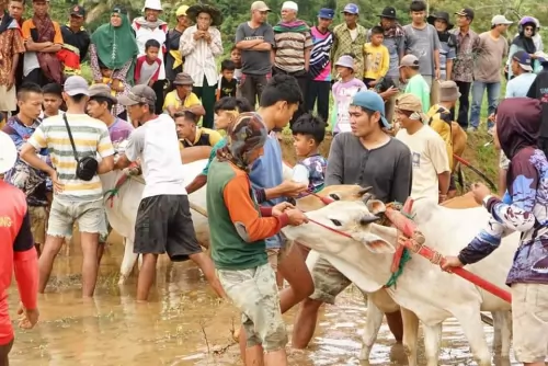 jadi mari kita dukung bersama-sama,” katanya. Pada kesempatan tersebut Wabup juga sampaikan pacu jawi selain alek anak nagari juga sebagai ajang silaturahmi, salah satu bukti dengan banyaknya kehadiran tokoh-tokoh, anggota DPRD Provinsi Sumbar, anggota DPRD Tanah Datar, Camat, Forkopimca, Wali Nagari dan ribuan masyarakat. Wabup juga tambahkan, event ini sangat bermanfaat, selain meningkatkan harga sapi, pacu jawi juga menggerakan perekonomian masyarakat di sekitarnya, karena banyaknya masyarakat yang berjualan aneka makanan, minuman dan lainnya.
