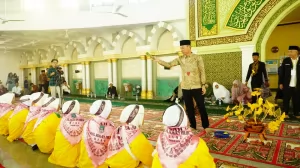 Rohil lintasliputan.com - Bupati Rokan Hilir (Rohil) Afrizal Sintong SIP secara langsung menyerahkan santunan BPJS ketenagakerjaan sebesar Rp 42 juta kepada keluarga salah satu pegawai Satpol PP yang meninggal dunia beberapa waktu lalu dikarenakan sakit, Jumat (12/5/2023).