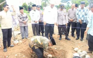 Pasbar - Ketua DPRD Kabupaten Pasaman Barat H Erianto Se. bersama Bupati Hamsuardi melakukan peletakan batu pertama Musholla SMPN 1 Pasaman, Kecamatan Pasaman, Kabupaten Pasaman Barat, ...